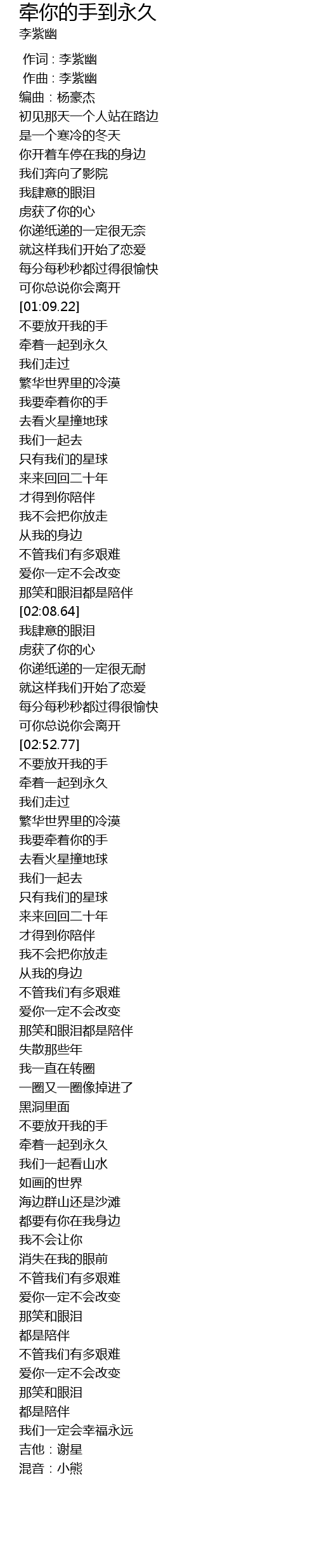 | [01:14.21] | qiān zhe yì qǐ dào yǒng jiǔ |