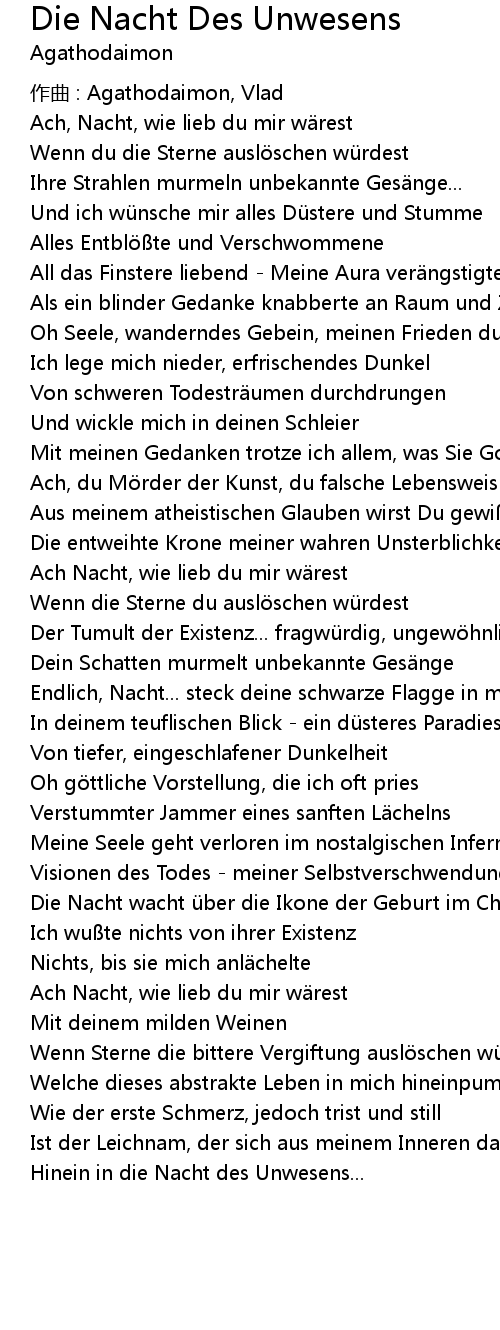 | Song | Die Nacht Des Unwesens |