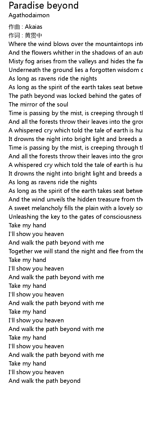 | Song | Paradise beyond |