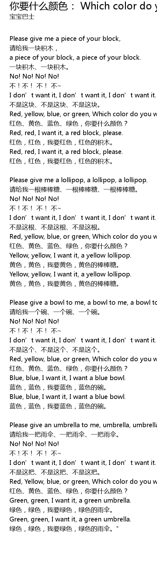 | Red, yellow, blue, or green, Which color do you want? | |