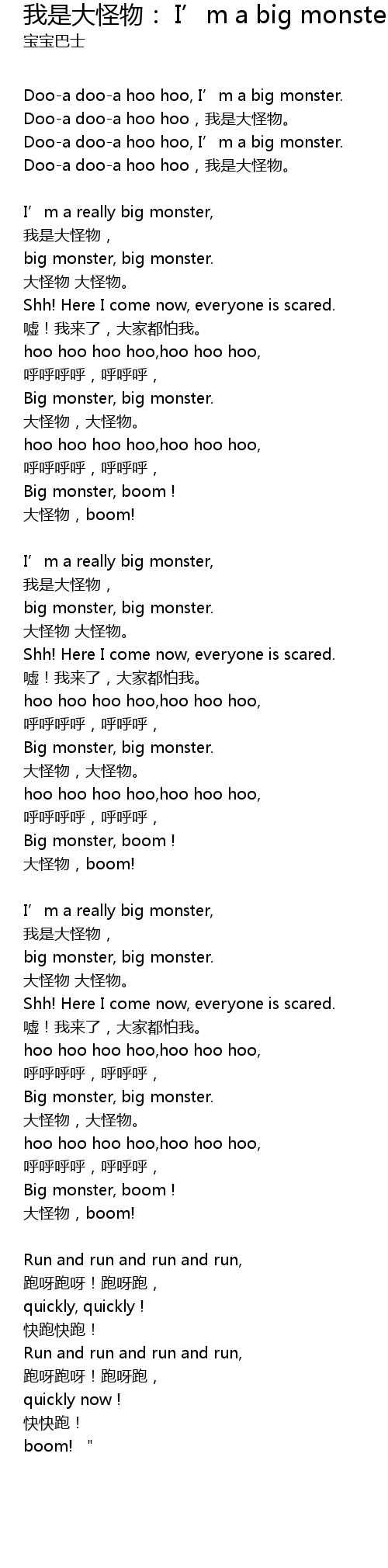 | Doo-a doo-a hoo hoo,我是大怪物。 | |