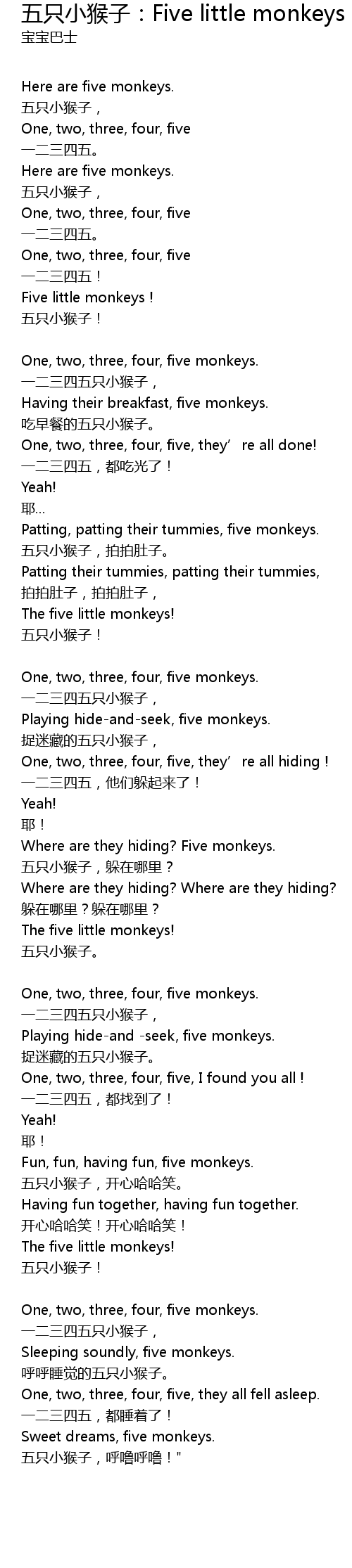 | 五只小猴子,呼噜呼噜!" |