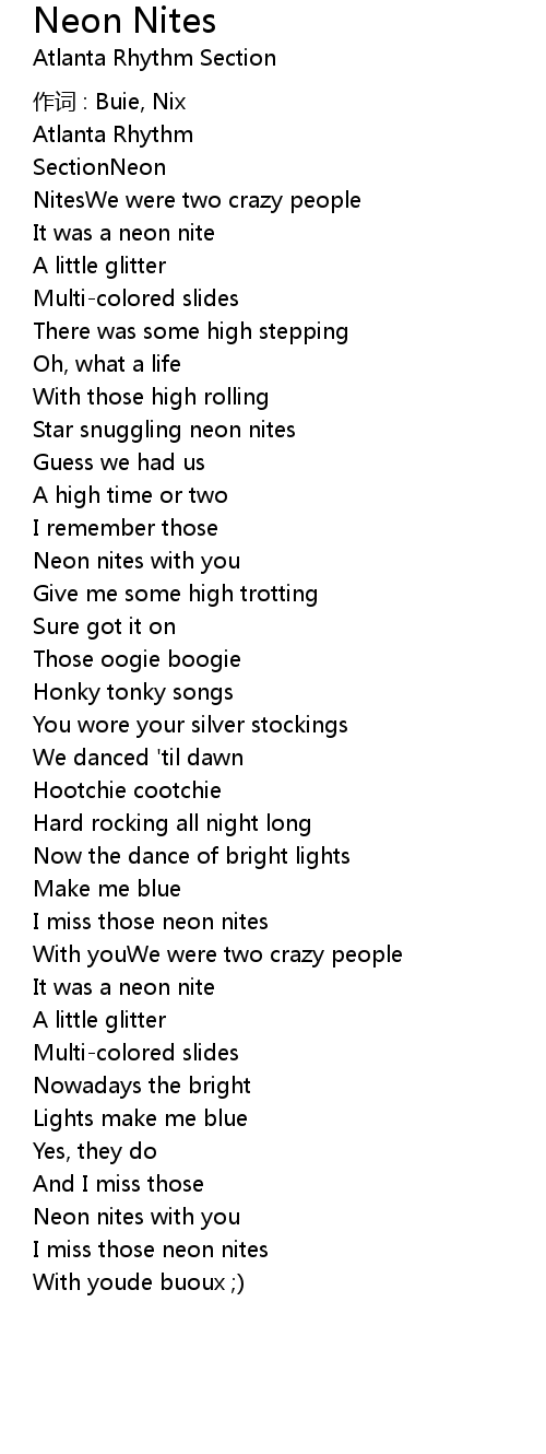 | I miss those neon nites | |