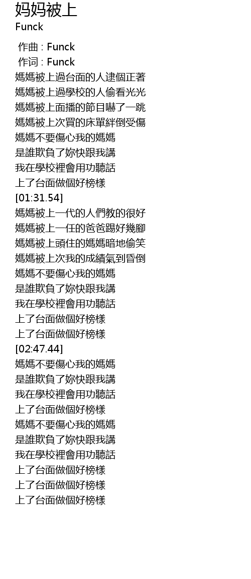 | [03:03.54] | 媽媽不要傷心我的媽媽 |