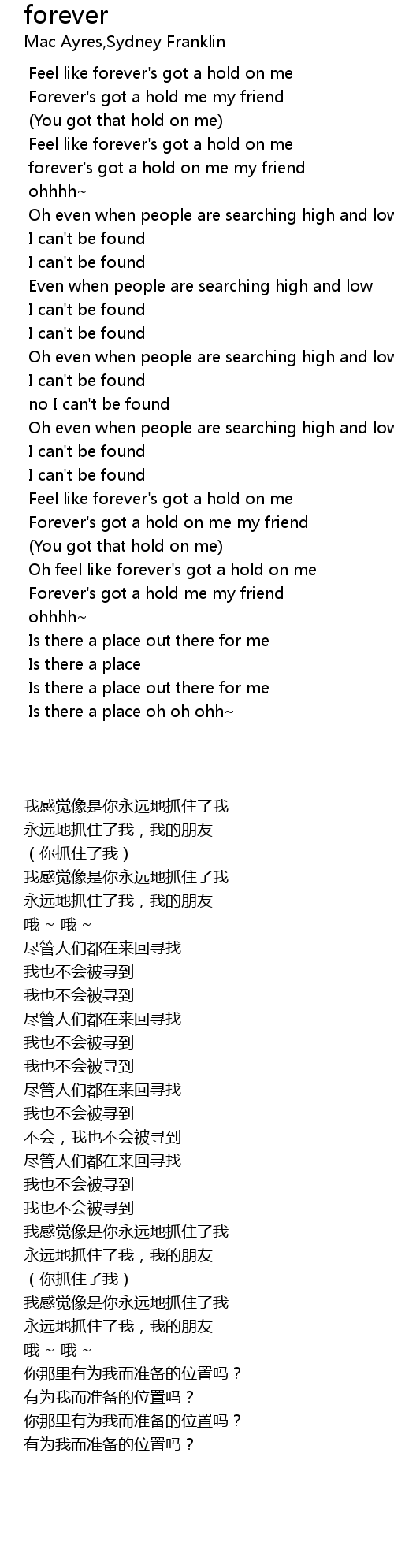 | [01:48.080] | Oh feel like forever's got a hold on me |