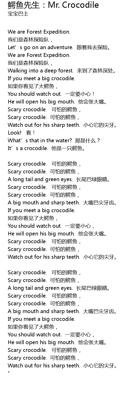 | Song | 鳄鱼先生:Mr. Crocodile |