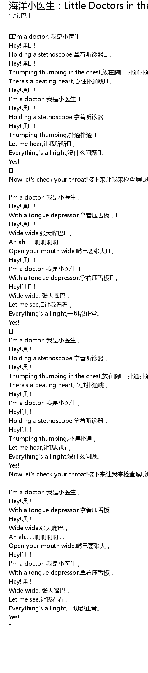 | I' m a doctor, wǒ shì xiǎo yī shēng, | |