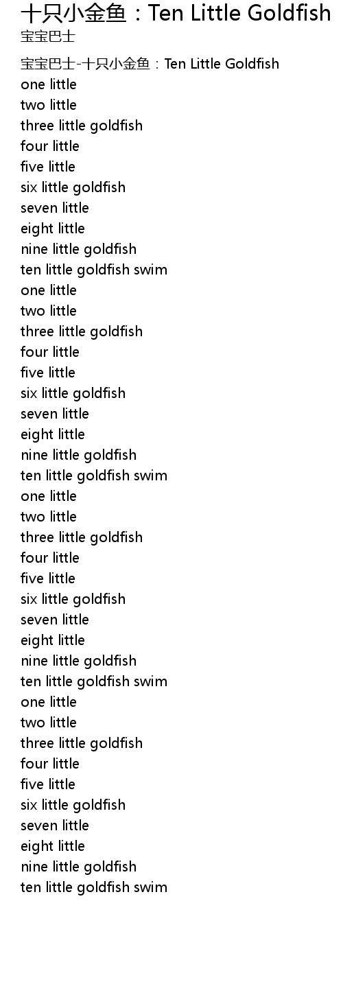 | [00:00.81] | 宝宝巴士-十只小金鱼:Ten Little Goldfish |