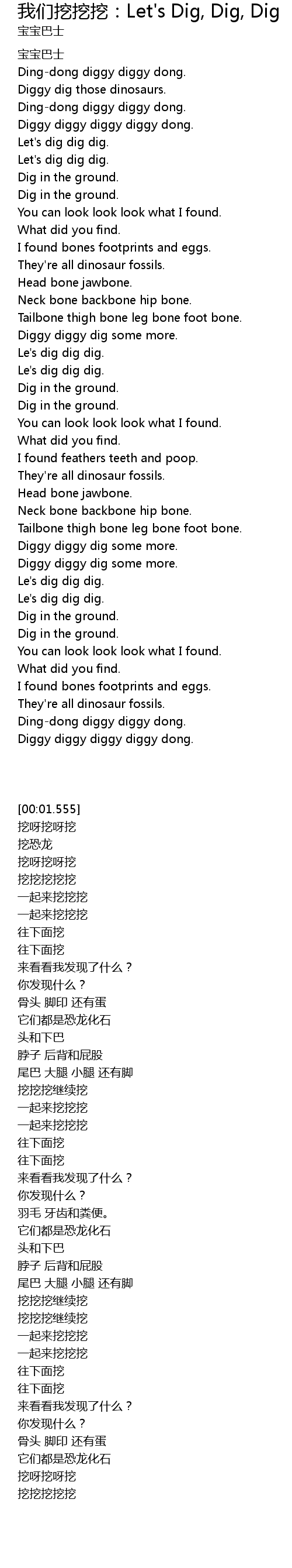 | [00:08.558] | Diggy dig those dinosaurs. |