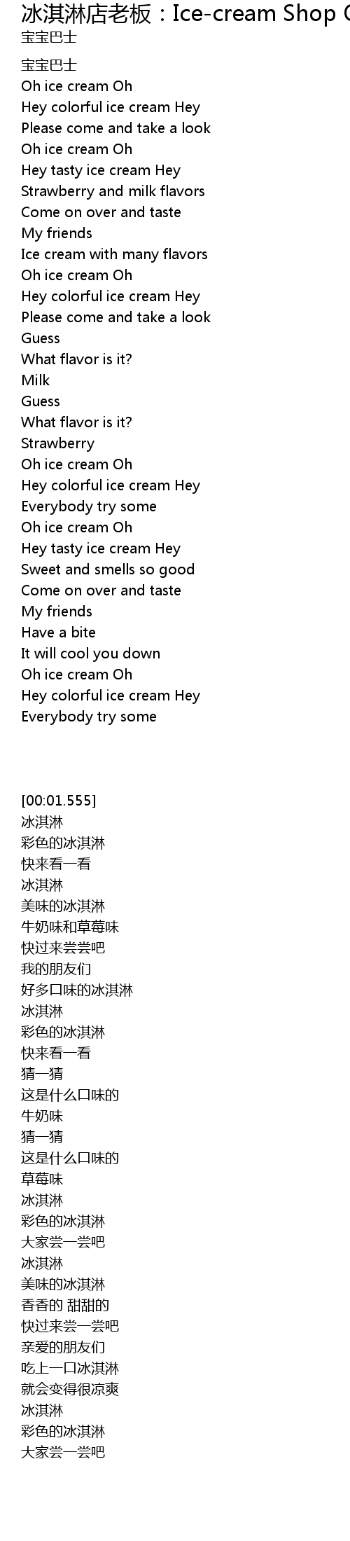 | Song | 冰淇淋店老板:Ice-cream Shop Owner |