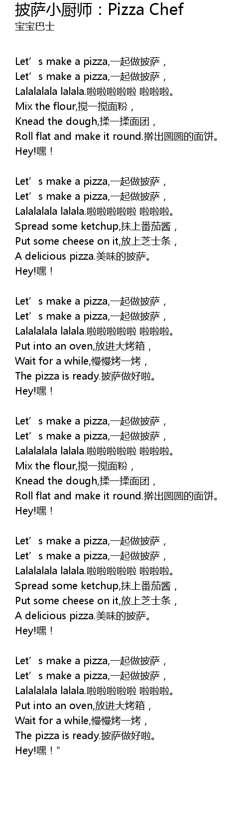 | Let' s make a pizza, yì qǐ zuò pī sà, | |
