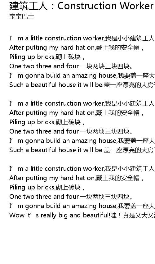 | I' m a little construction worker, wo shi xiao xiao jian zhu gong ren, | |