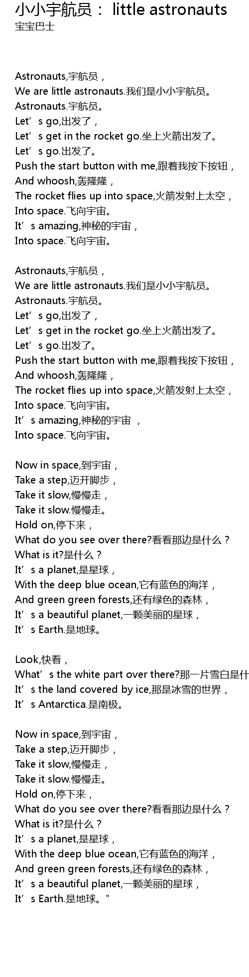 | Song | 小小宇航员: little astronauts |