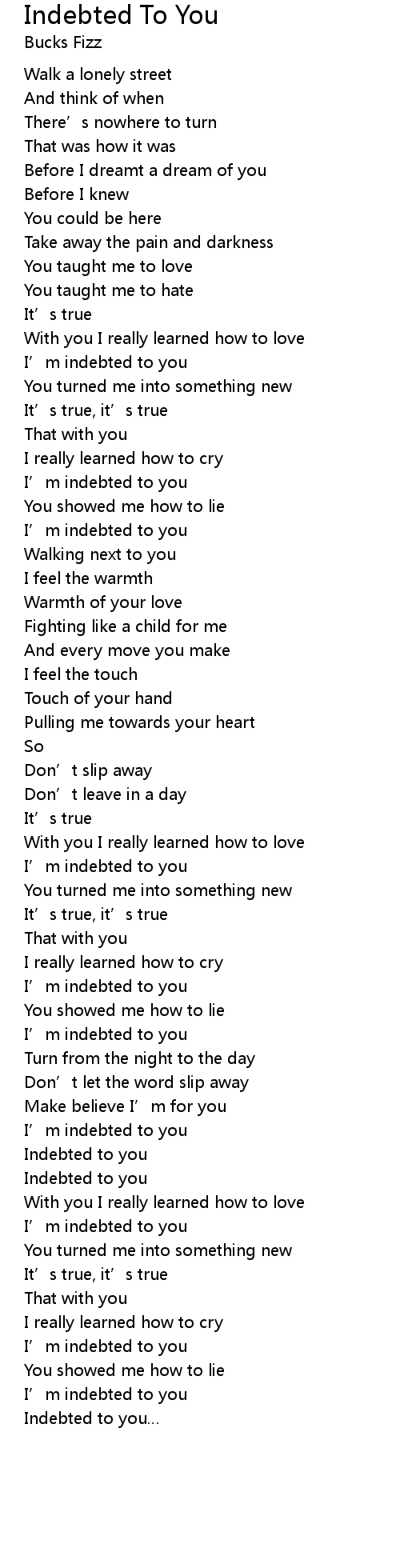 | Indebted to you | |