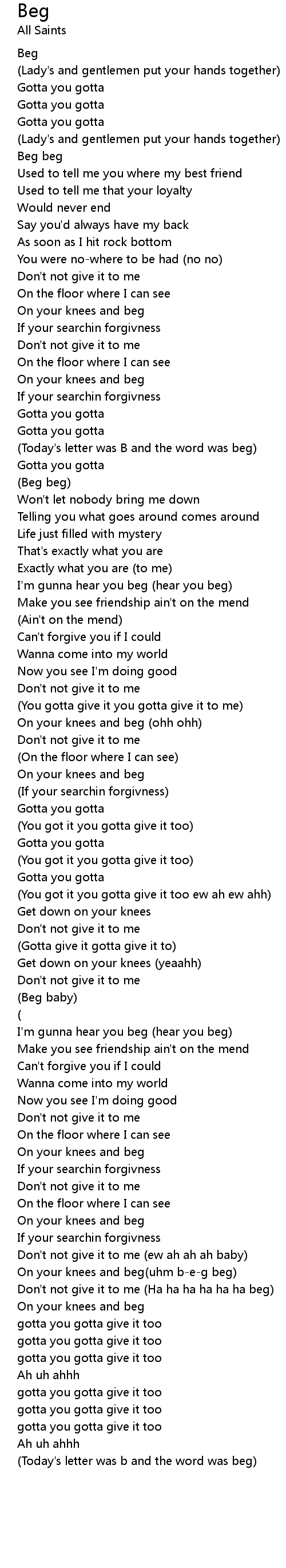 Beg Lyrics