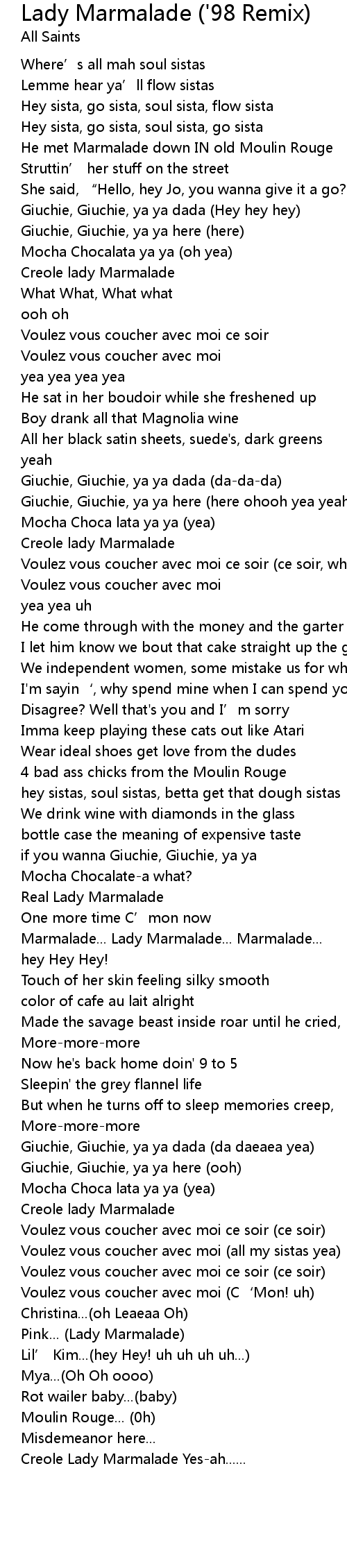 | Marmalade... Lady Marmalade... Marmalade... | |
