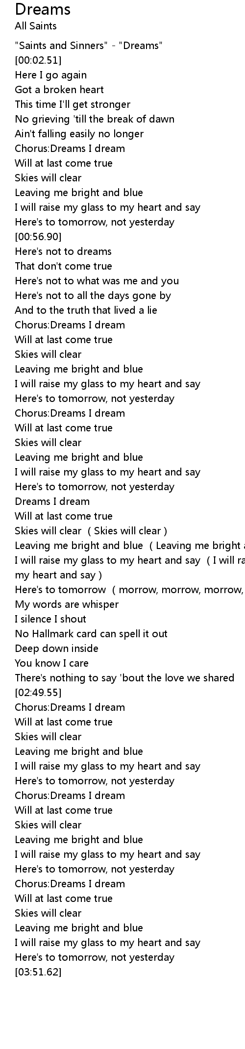| [02:55.52] | Chorus: Dreams I dream |