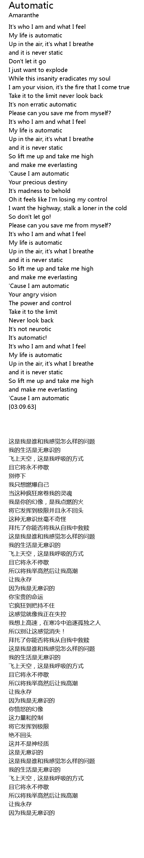| [00:56.53] | My life is automatic |