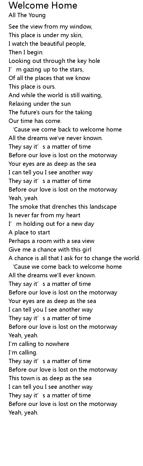 | ‘Cause we come back to welcome home | |