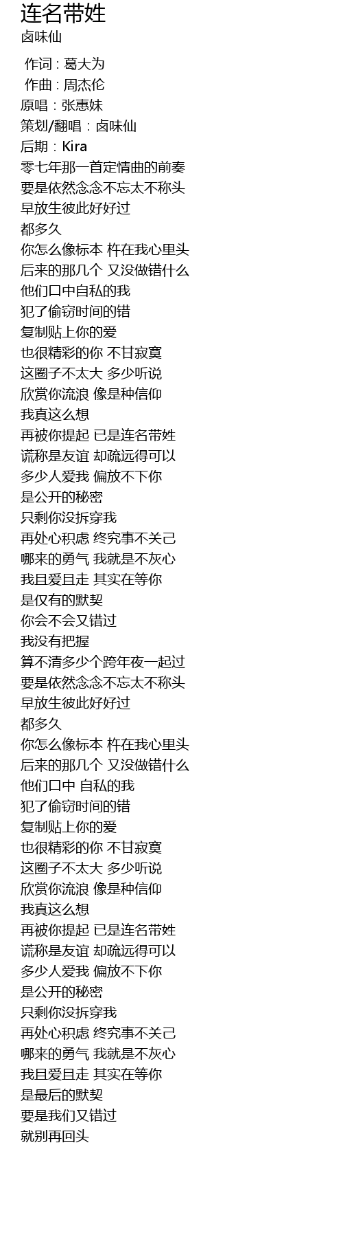 | [00:10.439] | 策划/翻唱:卤味仙 |