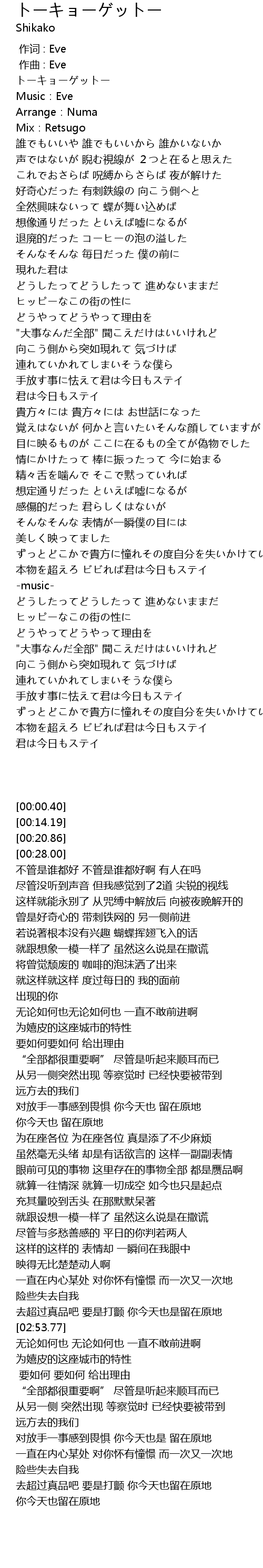 | [00:00.40] | トーキョーゲットー |