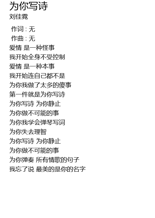 | [00:38.695] | wèi nǐ xiě shī wèi nǐ jìng zhǐ |