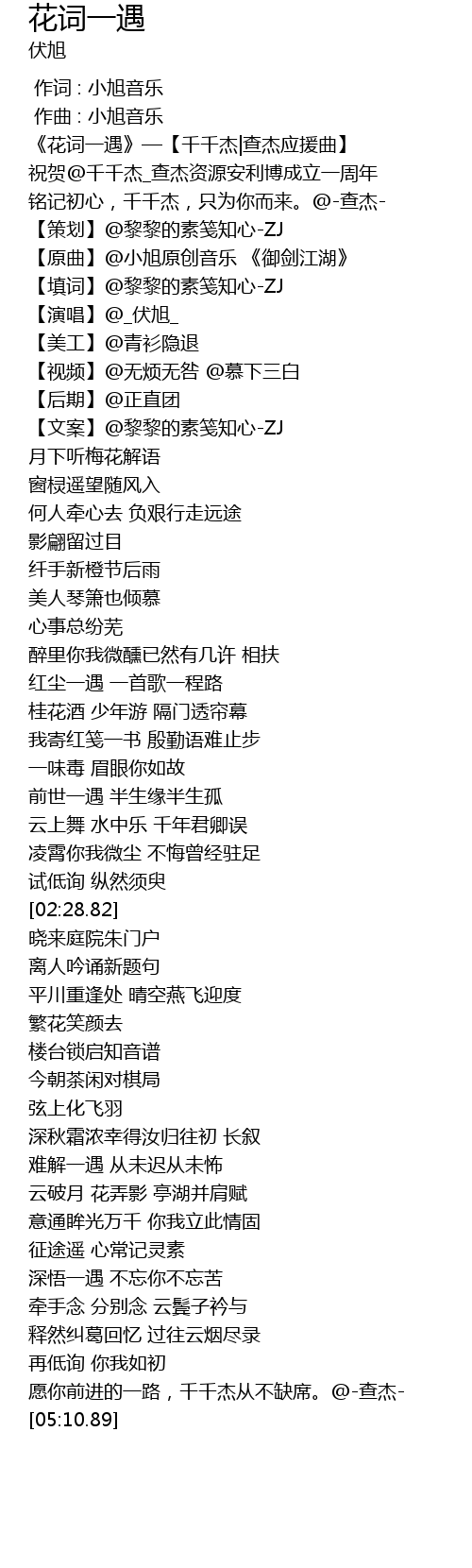 | [00:04.76] | 《花词一遇》—【千千杰|查杰应援曲】 |