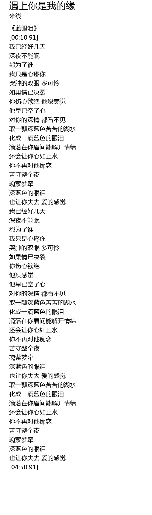 | [04:00.92] | 深蓝色的眼泪 |