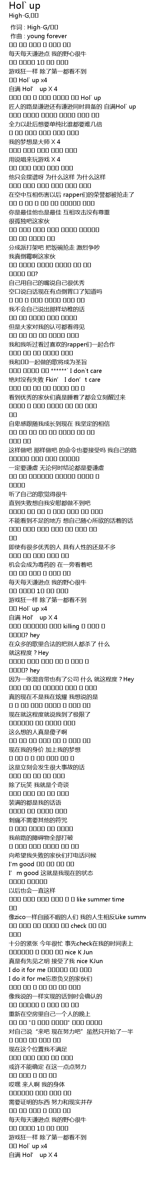 | [00:31.931] | 自满 Hol’ up X 4 |