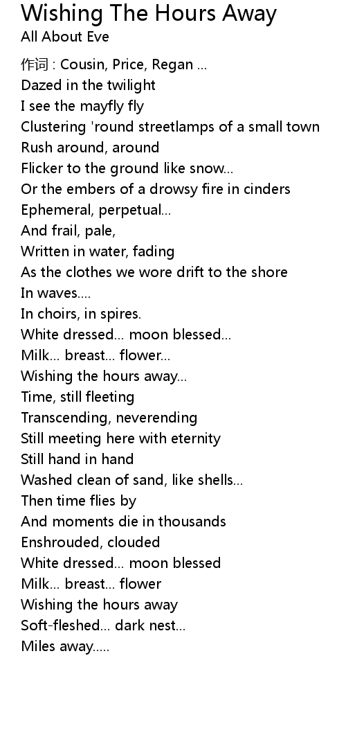 | Song | Wishing The Hours Away |