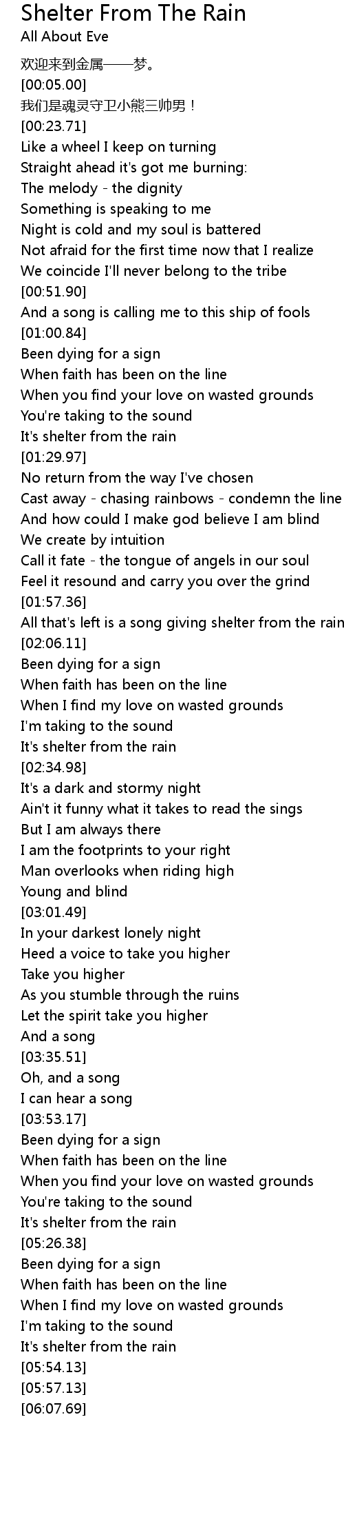 | [01:58.61] | All that' s left is a song giving shelter from the rain |