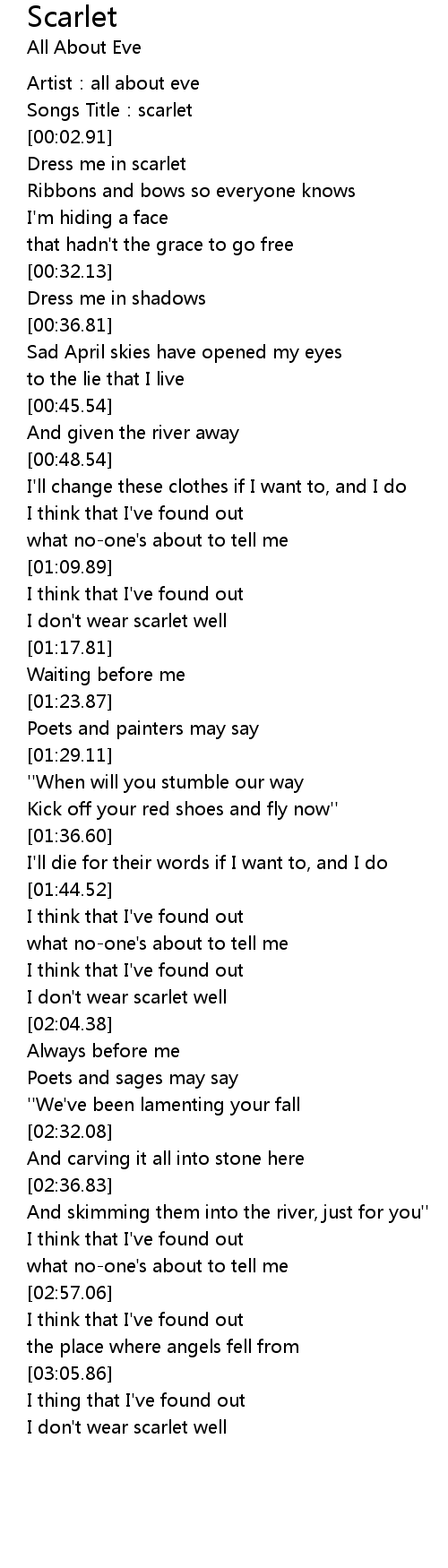 | [00:18.46] | Dress me in scarlet |