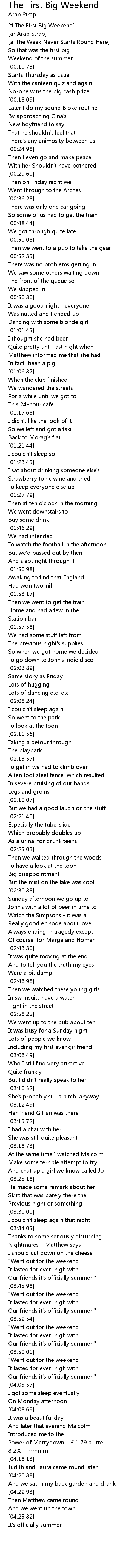 | [ti:The First Big Weekend] | |