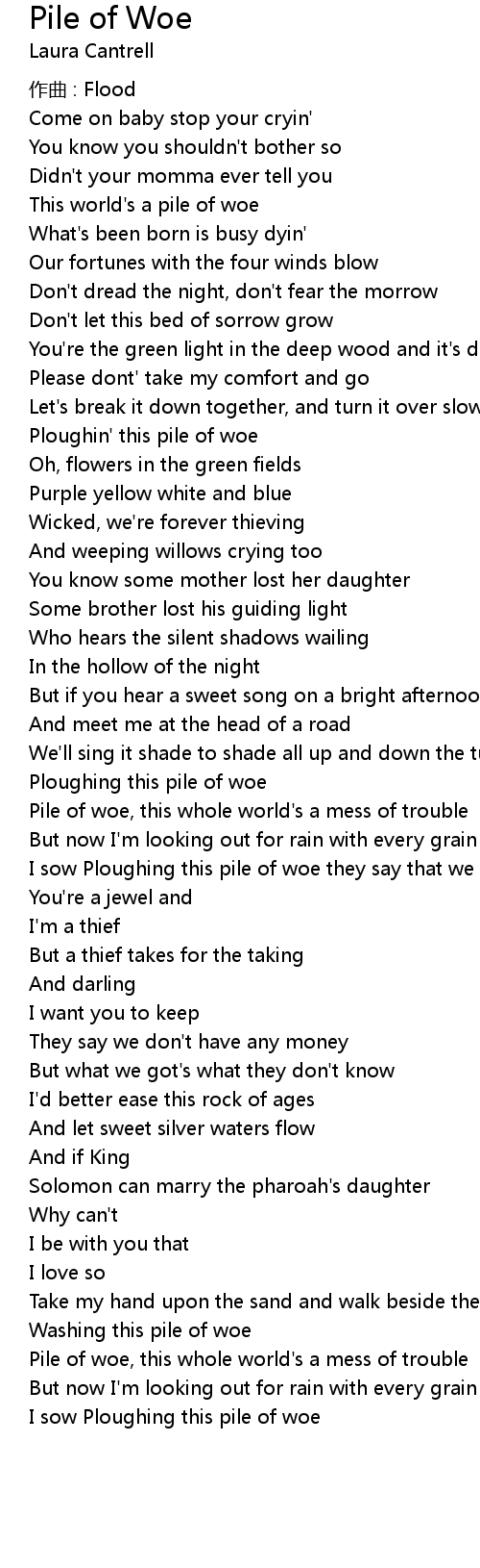 | I sow Ploughing this pile of woe they say that we two are too different | |