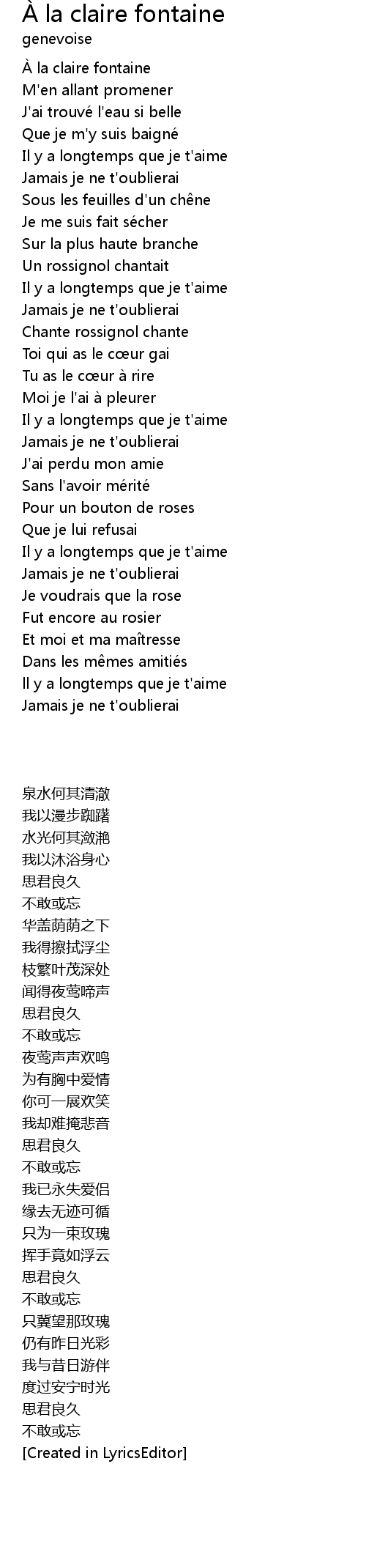 | [00:10.612] | J' ai trouve l' eau si belle |