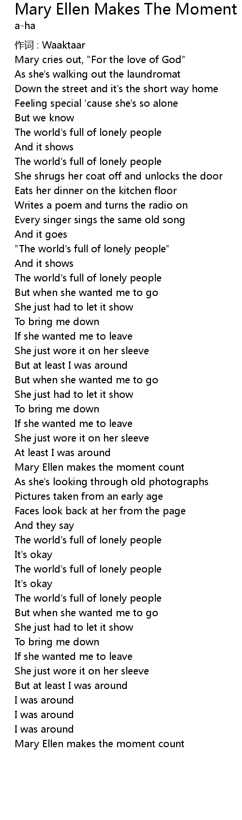 | " The world' s full of lonely people" | |