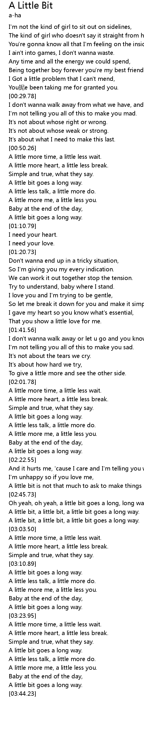 | [03:01.42] | A little bit, a little bit, a little bit goes a long way. |