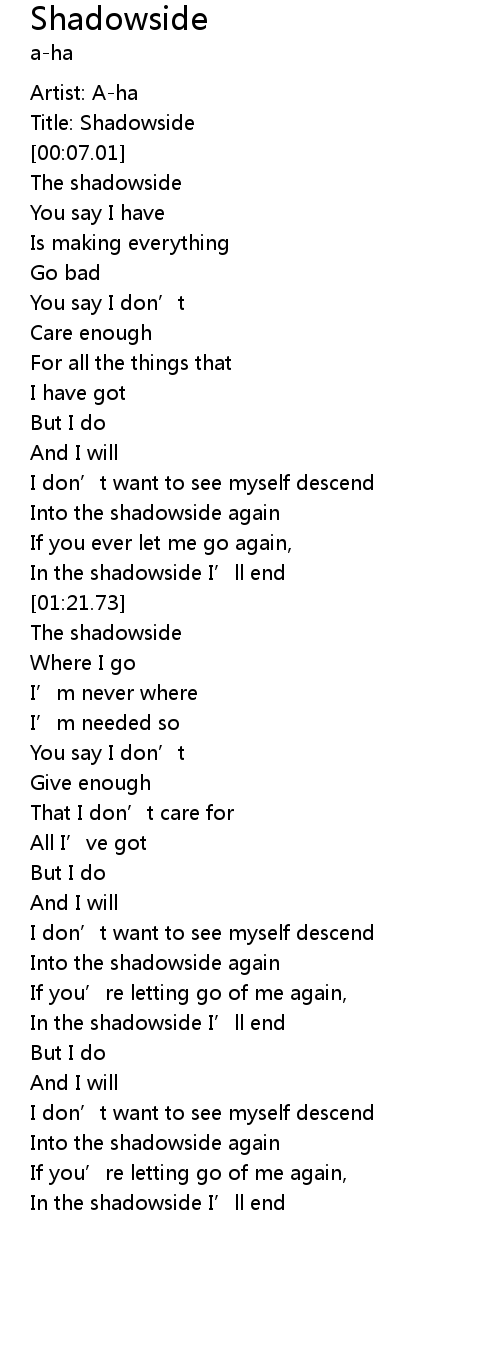 | [00:19.43] | The shadowside |