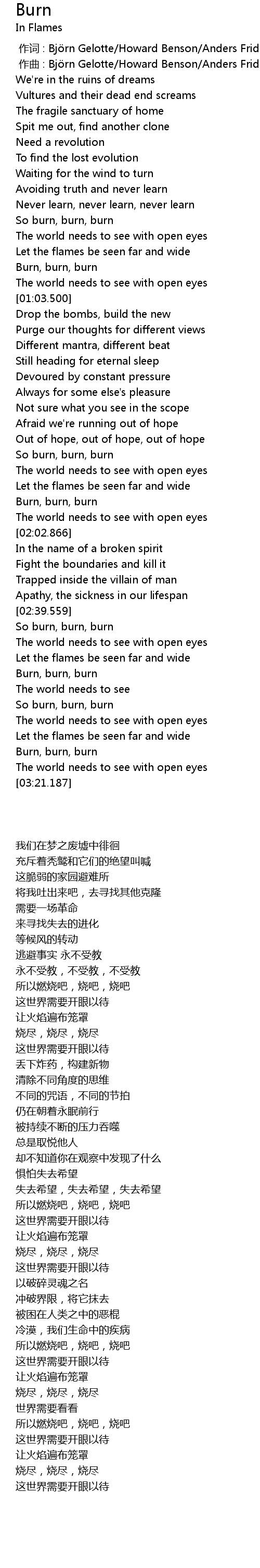 | [00:00.000] | 作词 : Björn Gelotte/Howard Benson/Anders Fridén |