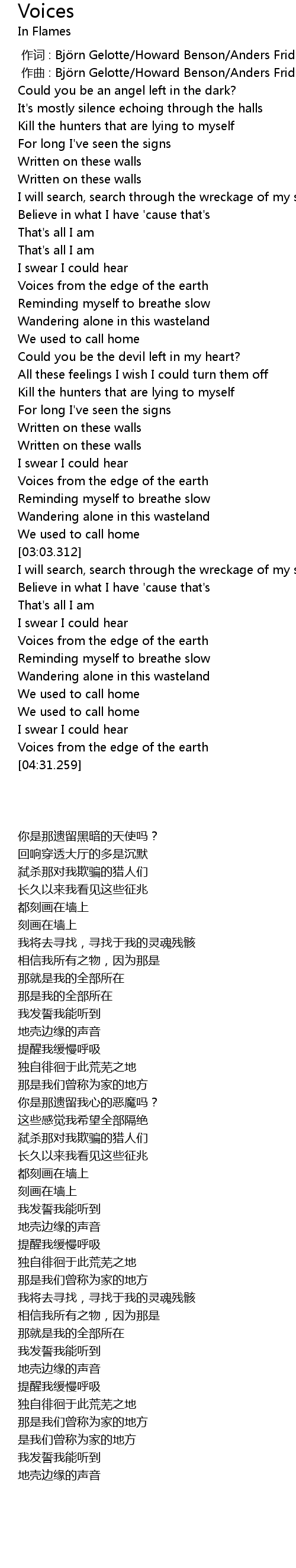 | [00:01.000] | 作曲 : Björn Gelotte/Howard Benson/Anders Fridén |