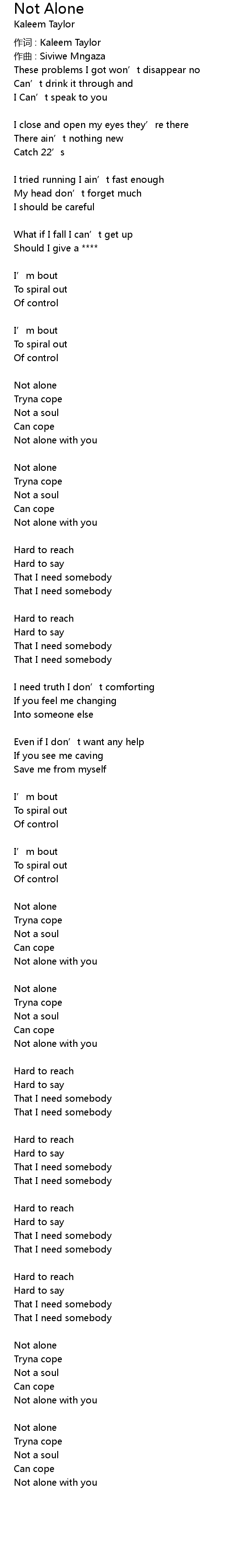 | 作词 : Kaleem Taylor | |