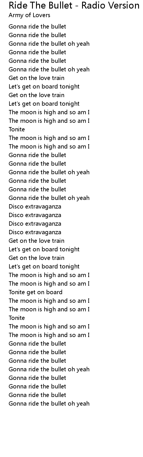 Gonna ride the bullet oh yeah |