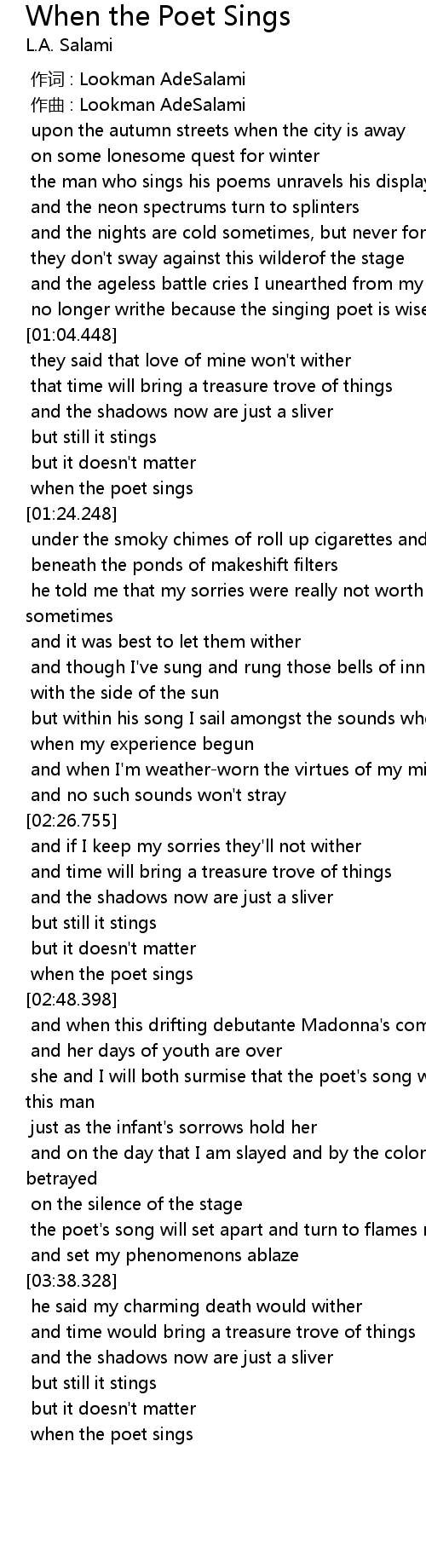 | [03:10.534] | she and I will both surmise that the poet' s song will brush aside this man |