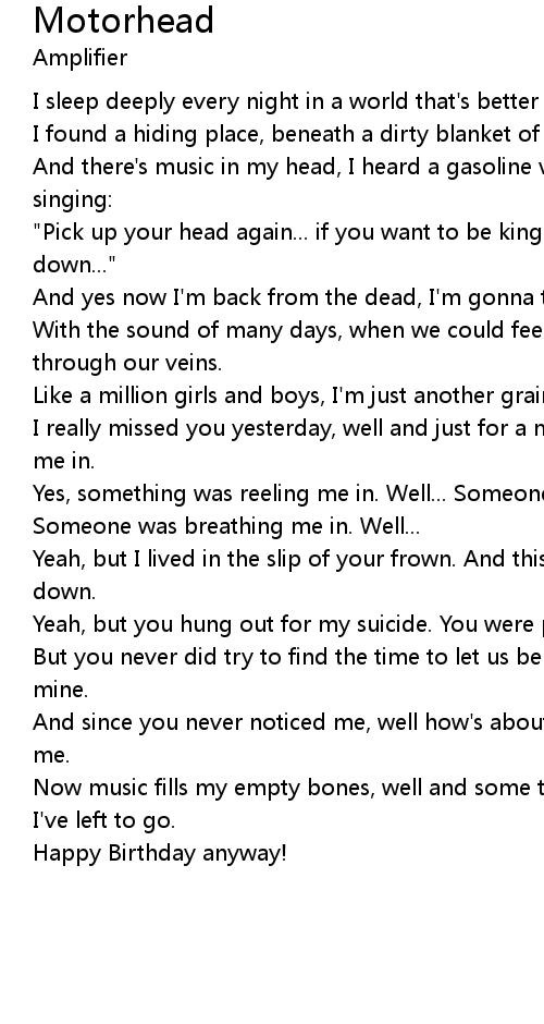 | And yes now I'm back from the dead, I'm gonna turn it up loud inside your head. | |