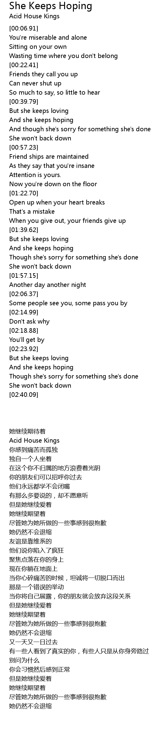 And she keeps hoping |