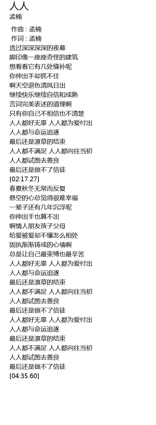 | [04:11.96] | 人人都不满足 人人都向往当初 |