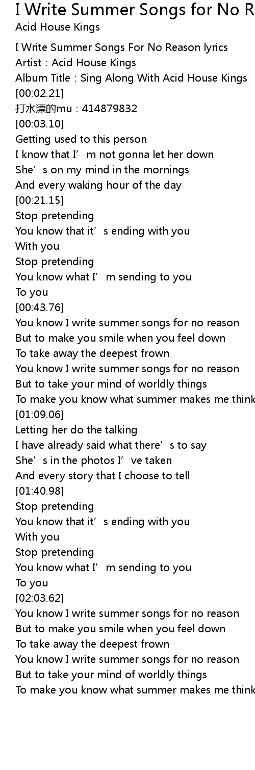 | [02:04.03] | You know I write summer songs for no reason |