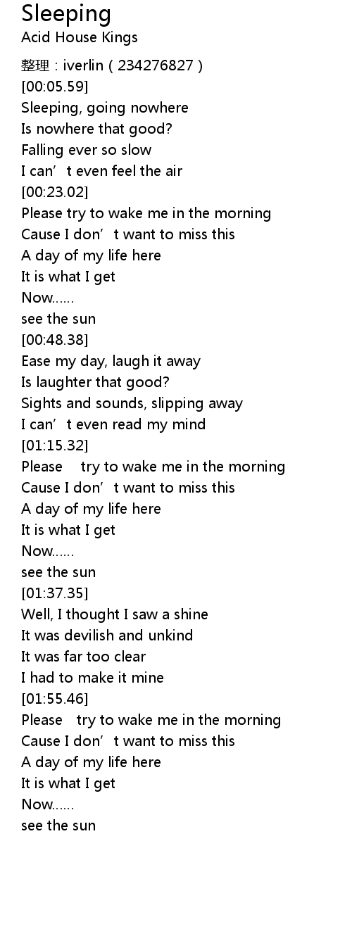| [00:07.57] | Sleeping, going nowhere |