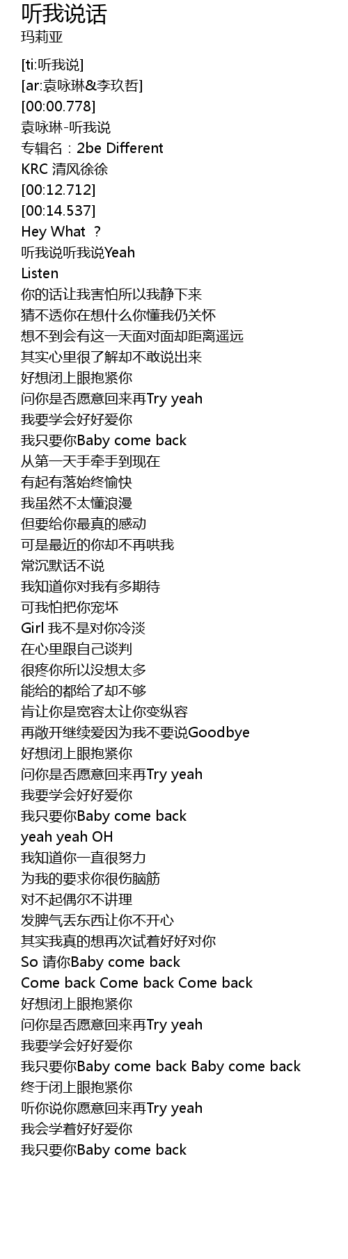 | [03:01.426] | ting ni shuo ni yuan yi hui lai zai Try yeah |