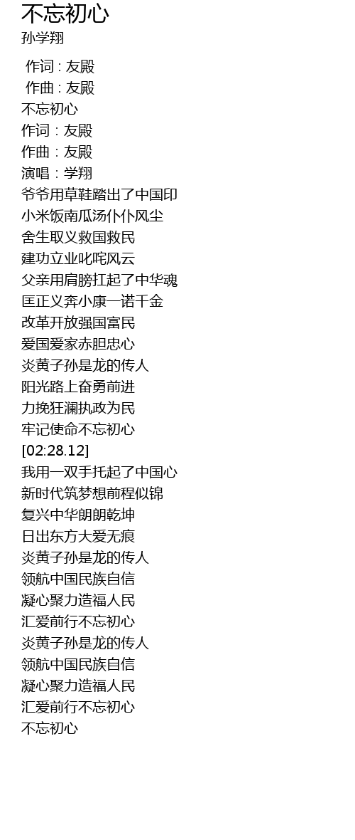 | [02:12.94] | lao ji shi ming bu wang chu xin |